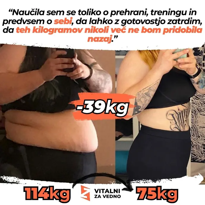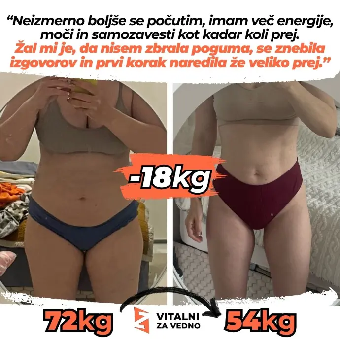 Ponosna sem nase in to, kar mi je z Juretovo pomočjo uspelo doseči. Imam 18kg manj, neizmerno boljše se počutim, imam več energije, moči in samozavesti kot kadar koli prej. Prej je ta cilj obstajal le v moji domišljiji, s pravo podporo, pristopom in nepopustljivo vztrajnostjo tudi, ko ni šlo vse po načrtih, pa je zdaj postal realnost. Žal mi je, da nisem zbrala poguma, se znebila izgovorov in prvi korak naredila že veliko prej.